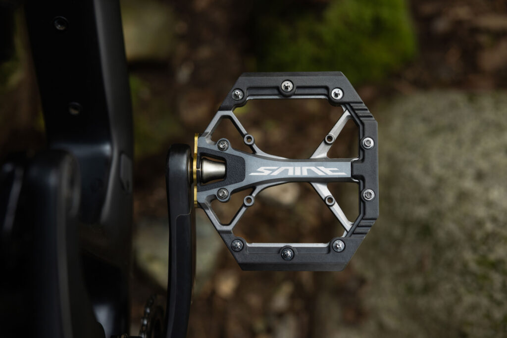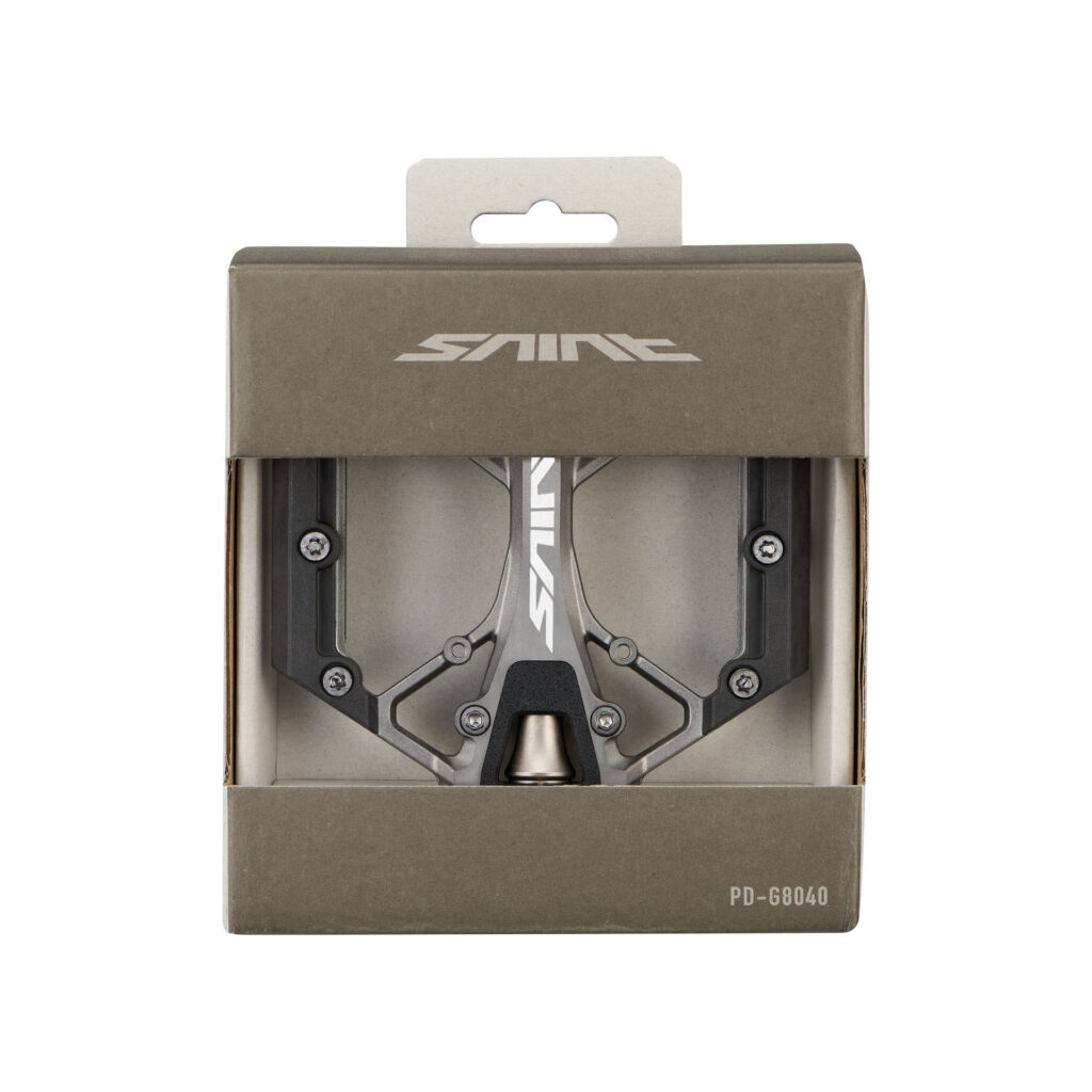 Flatové pedále SAINT PD-G8040 sú určené na zjazd, enduro a agresívnu jazdu po trailoch, sú na vrchole ponuky flatových pedálov SHIMANO. Tieto pedále, ktoré vychádzajú z dedičstva SAINT zameraného na gravity štýl jazdenia. Vyznačujú sa extra širokou, dvojito konkávnou platformou, ktorá umožňuje jazdcovej tretre prirodzene sa usadiť a poskytuje stabilný a kontrolovaný pocit na strmom, technickom teréne.