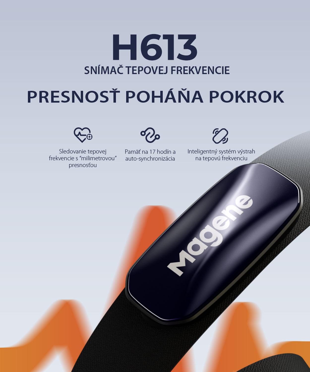 Magene H613 je profesionálny hrudný snímač srdcovej frekvencie s optickým PPG senzorom, LED indikáciou tréningových zón, výdržou batérie až 100 hodín a unikátnou možnosťou zaznamenávať tréningy bez nutnosti pripojenia k zariadeniu (offline pamäťou). Vďaka podpore Bluetooth 5.0 a ANT+ je kompatibilný s väčšinou moderných aplikácií a cyklopočítačov.