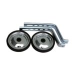 Pomocné kolieska pre začínajúcich cyklistov. Gumené kolieska s oceľovým stredom majú dlhú životnosť a mäkký chod. Pevný úchyt z oceľového profilu hrúbky 3 mm a bezpečnostnými ramenami a podložkami držia kolieska pevne na svojom mieste aj pri nabehnutí na prekážku. Oceľový profil s otvormi umožňuje nastaviť kolieska pre bicykle s 12-20″ kolesami.