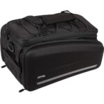 Taška na bicykel s ramenným popruhom a pláštenkou do dažďa. Jednoduchá, univerzálna montáž pomocou pásikov na suchý zips. Materiál – Polyuretán 600D