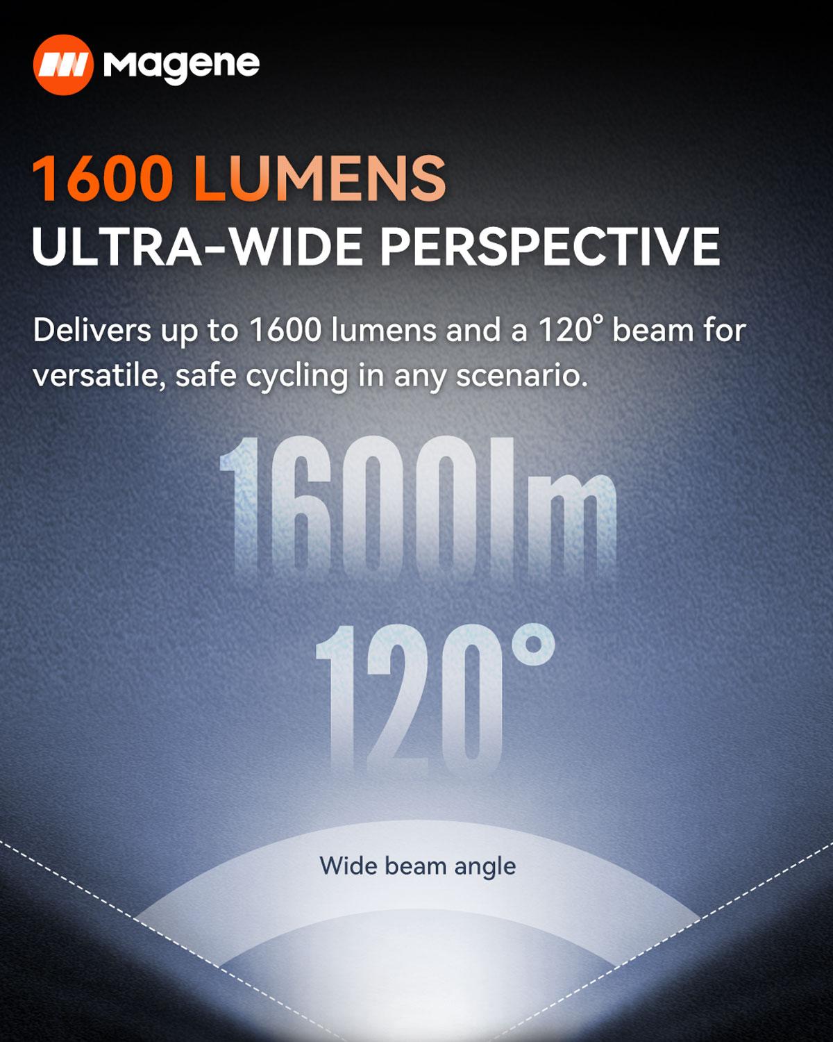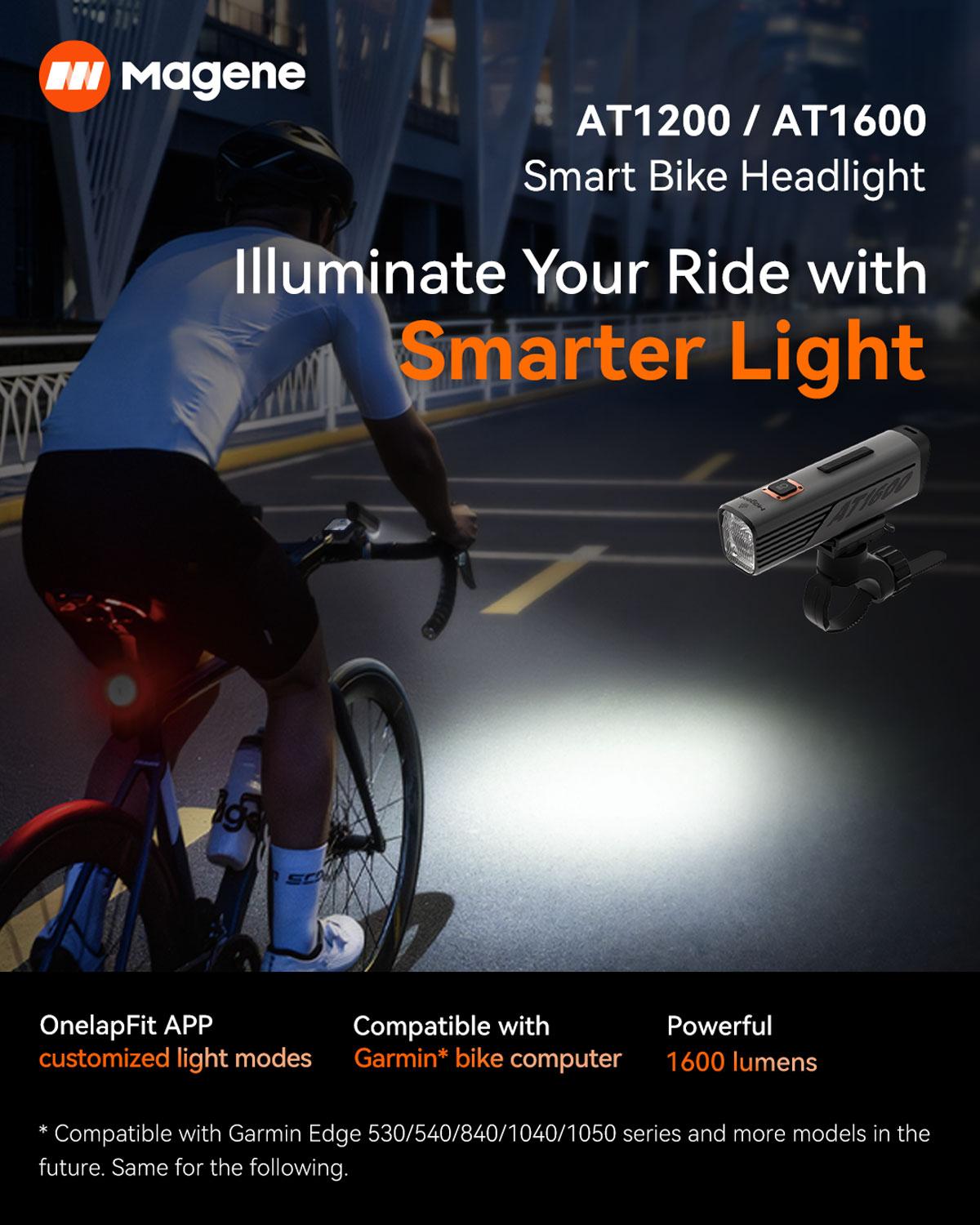 MAGENE AT1200 je inteligentné predné svetlo na bicykel s výkonom až 1200 lúmenov, ktoré zaručuje vynikajúcu viditeľnosť aj v najnáročnejších podmienkach. Vďaka širokému 120° svetelnému lúču si užijete bezpečnú a komfortnú jazdu, či už pri dochádzaní do práce, tréningoch alebo nočných výletoch.