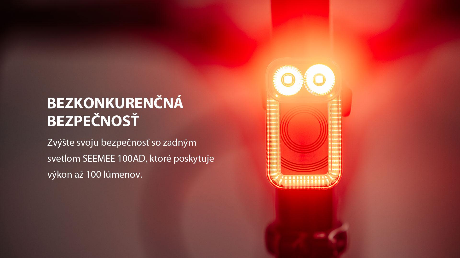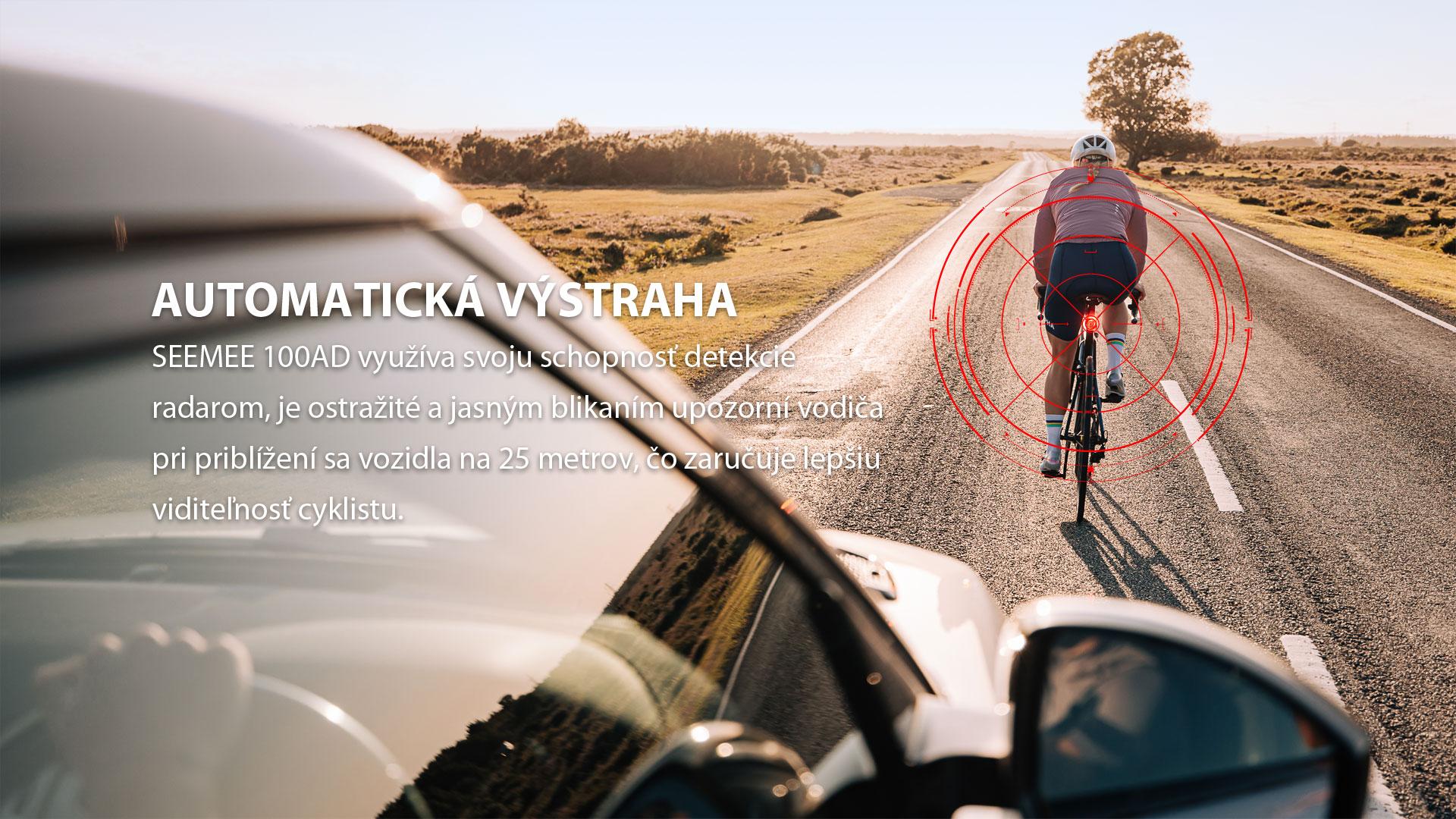 Využitím špičkových technológií radarového snímania dokáže SEEMEE 100AD rozpoznať blížiace sa vozidlá až na vzdialenosť 25 metrov. Bez ohľadu na to, či ide o tiché e-bicykle, alebo vozidlá jazdiace rýchlosťou 5 až 160 kilometrov za hodinu, SEEMEE 100AD pohotovo zareaguje a upozorní 100 lm zábleskom a tým efektívne zníži pravdepodobnosť kolízie zozadu.
