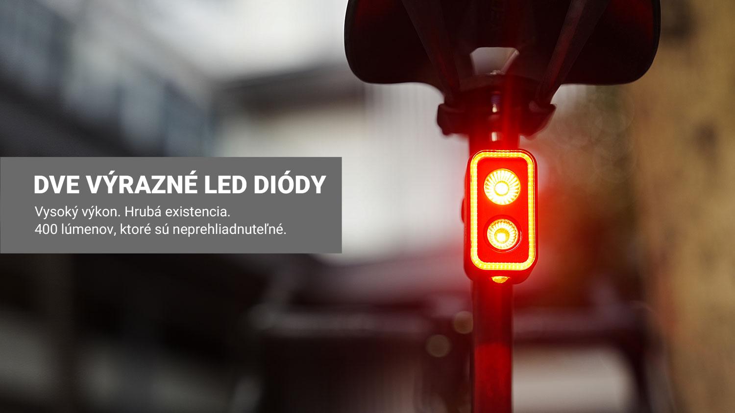 -Výkon až 400 lm – dvojité LED diódy pre silnú svetelnú stopu.