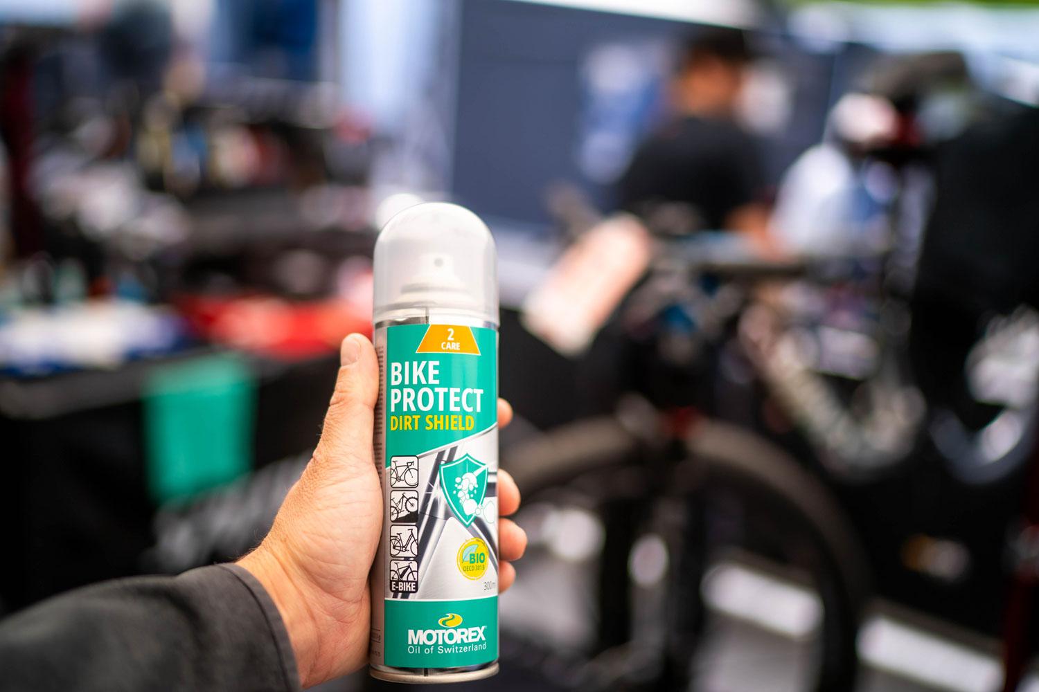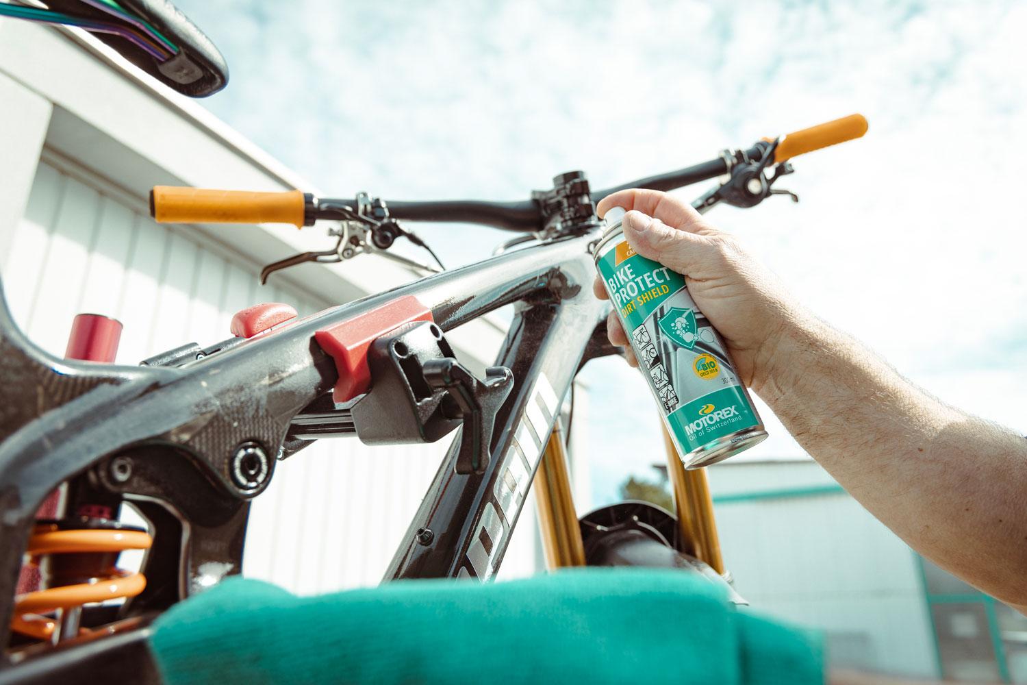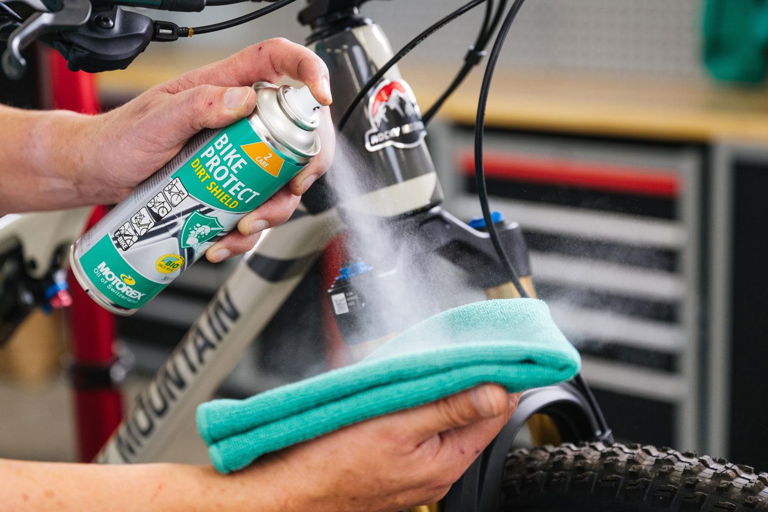 Aplikácia: Bicykel vyčistite prípravkom BIKE CLEAN a obnovte ho do pôvodného stavu pomocou iných mazív a ošetrovacích prostriedkov MOTOREX. Pred použitím pretrepte. Nastriekajte BIKE PROTECT BIO na handričku alebo mikrovláknovú utierku a votrite ho do vyčistených a suchých častí. Predtým otestujte kompatibilitu materiálu na nenápadnom mieste. Nestriekajte na brzdové kotúče.