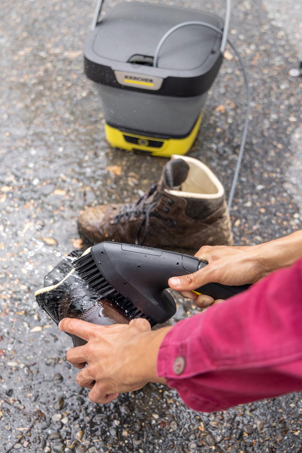 Jej kombinácia tlakového prúdu a štetín zaisťuje obzvlášť silný čistiaci účinok, a to aj pri rýchlom čistení. Môže sa použiť na záhradný nábytok, bicykle a iné vonkajšie vybavenie.