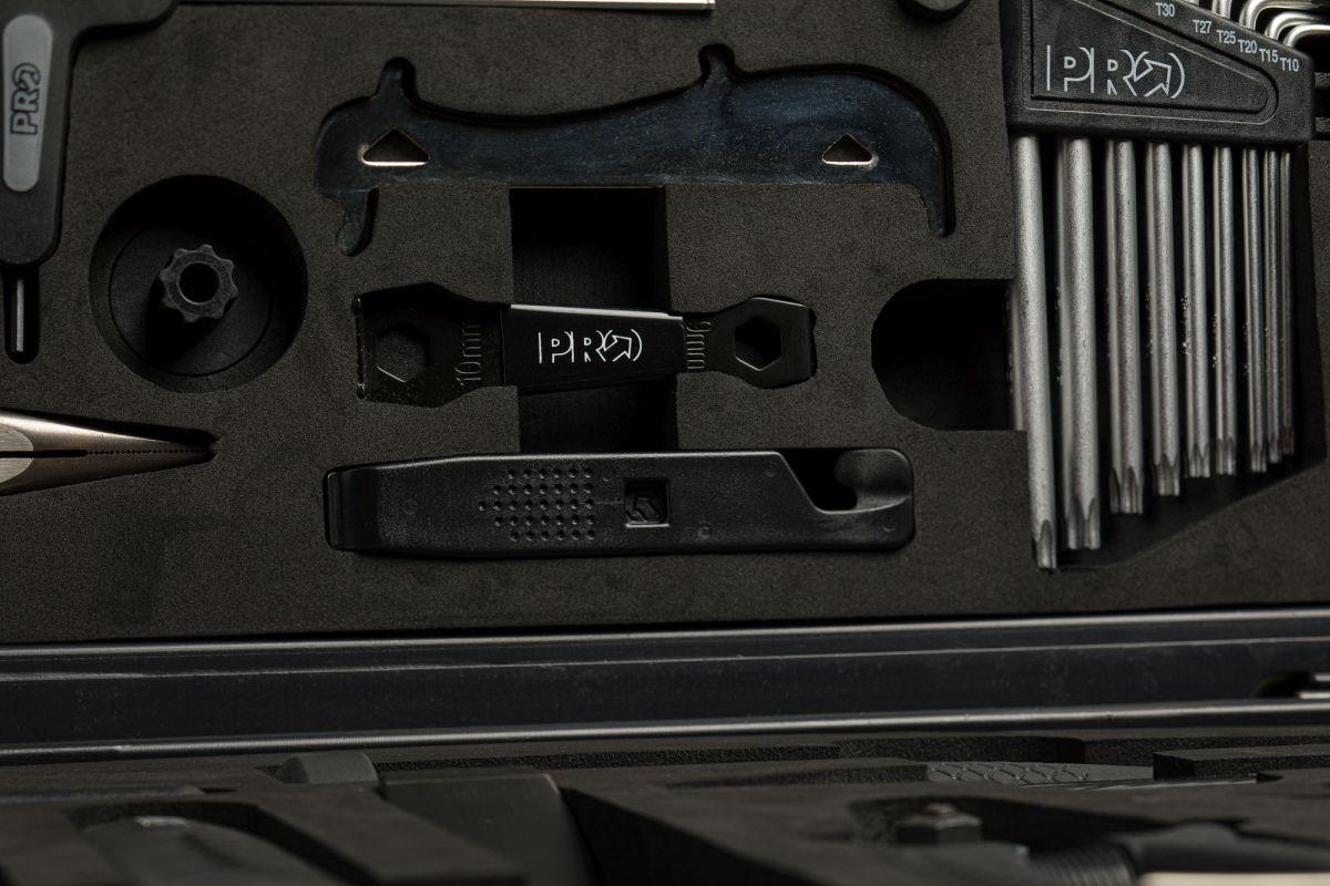 Nôž, kliešte na rýchlospojky, reťazový nitovač, monterpáčky na plášte, kľúč na pedále 15 mm.