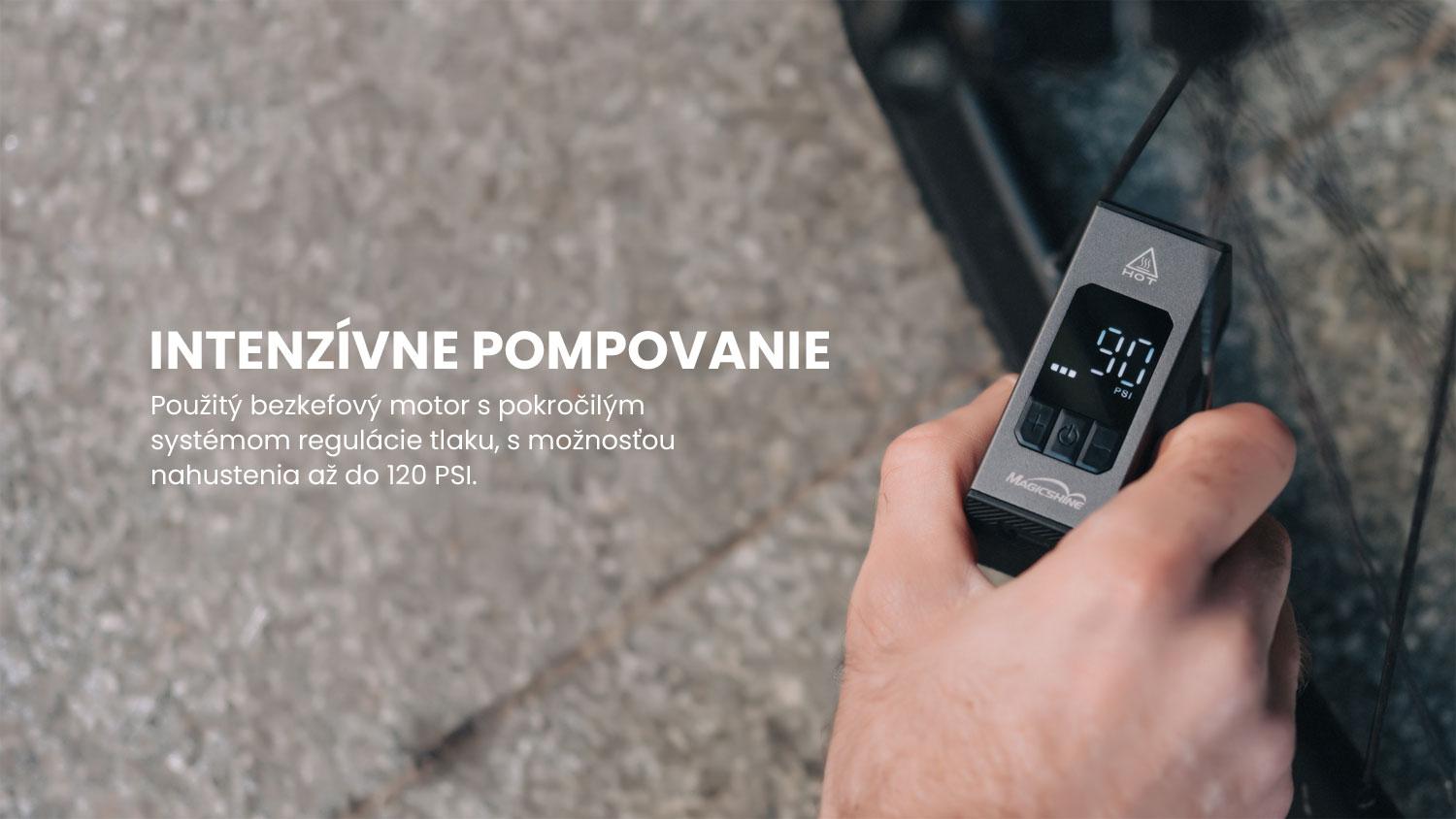 • Výkonný bezuhlíkový (brushless) motor – nafúkne pneumatiky až do 120 PSI / 8,3 Bar