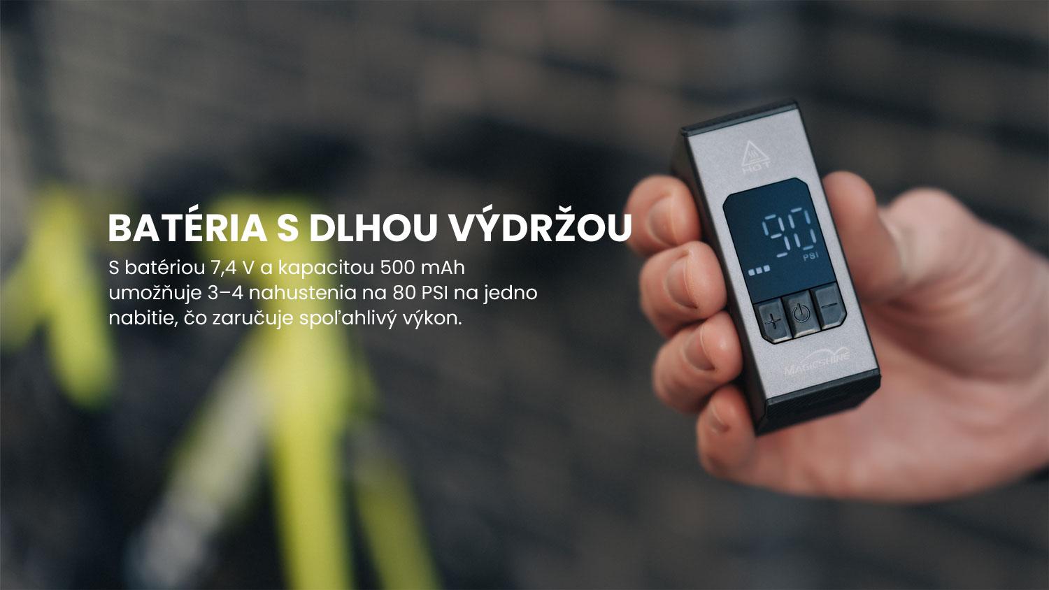 • Batéria 7.4V 500mAh – až 3–4 nafúknutia na 80 PSI na jedno nabitie