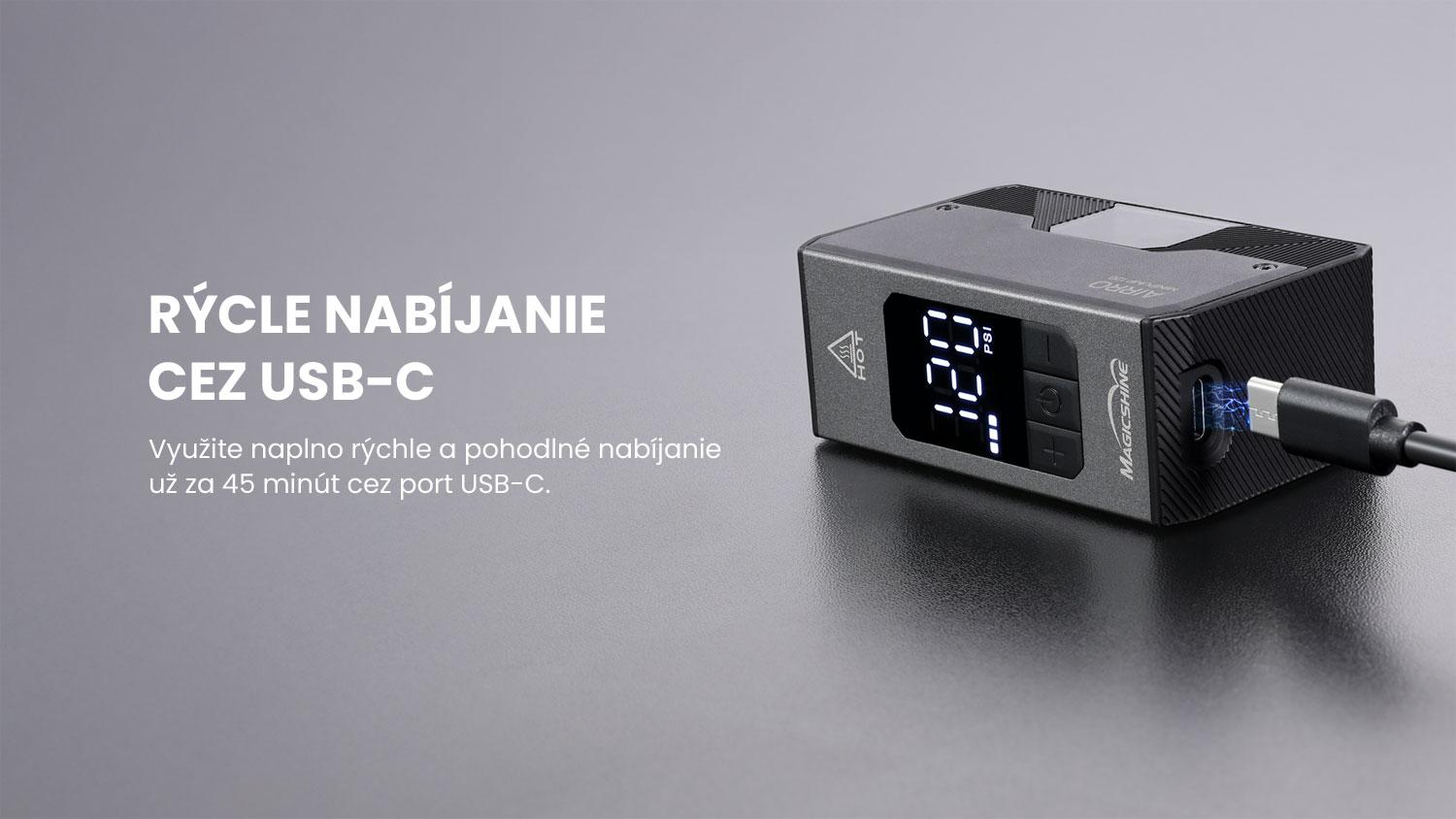 • Rýchle nabíjanie cez USB-C – len 45 minút do plného nabitia