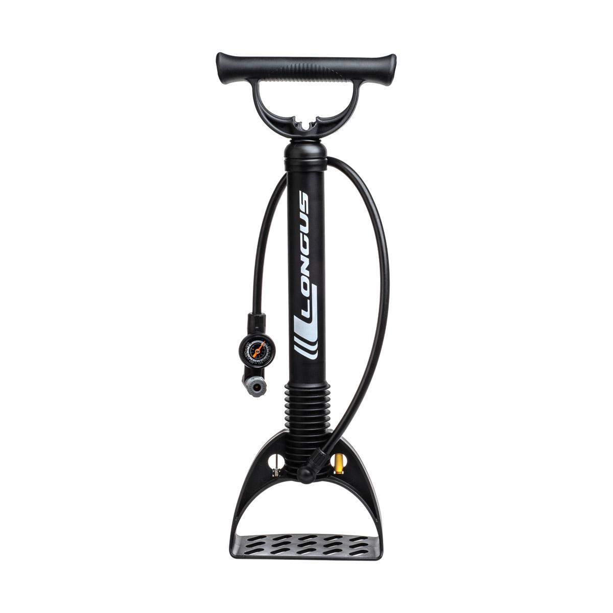 Servisná pumpa s plastovým telom a plastovým podstavcom na jednu nohu. Manometer umiestnený pri hlave hadičky umožňuje ľahkú čitateľnosť a kontrolu tlaku. Ergonomická rúčka pre pohodlné uchopenie jednou alebo oboma rukami. Univerzálny clever ventil sa automaticky prispôsobí typu ventilu (AV/FV). Súčasťou balenia sú adaptéry na fúkanie lôpt a plážových nafukovačiek.