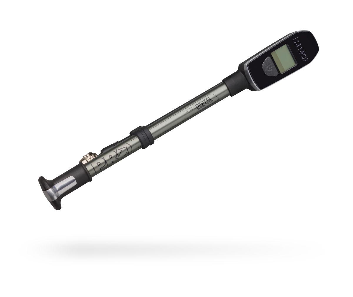 Praktická minipumpa s digitálnym manometrom na vidlicu/tlmič.