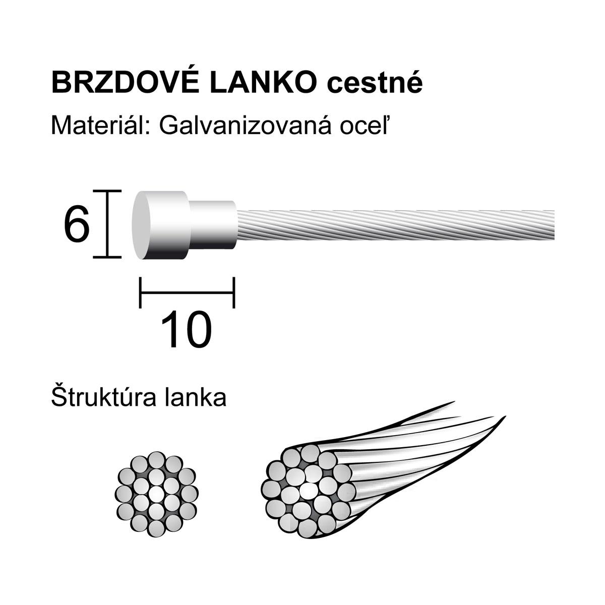 Brzdové lanko s ROAD koncovkou pre cestné bicykle. Je viazané z 19 tenkých laniek z galvanizovanej ocele. Vďaka kvalitnému výrobnému procesu lanko poskytuje excelentnú odolnosť v ťahu pri brzdení. Balenie 100ks v boxe.