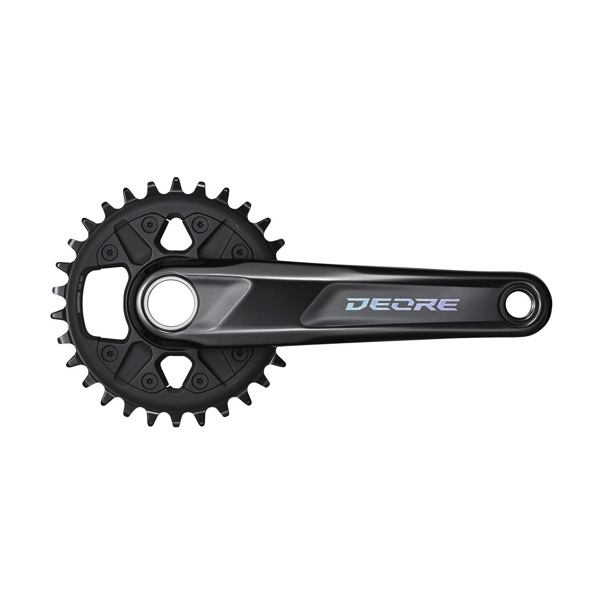 Dvojdielne kľuky DEORE s pevnou oskou určené pre 12 rýchlostné radiace systémy. Uchytenie prevodníka na kľuky Direct Mount pomocou jednej matice. Špeciálny profil zubov Dynamic Chain Engagement+ zlepšuje držanie a chod reťaze na prevodníku. Balené, bez stredových ložísk. S 30 zubovým prevodníkom bez krytu. Reťazová linka 52mm. Vhodný pre rámy so šírkou zadnej stavby 135/142/148mm.