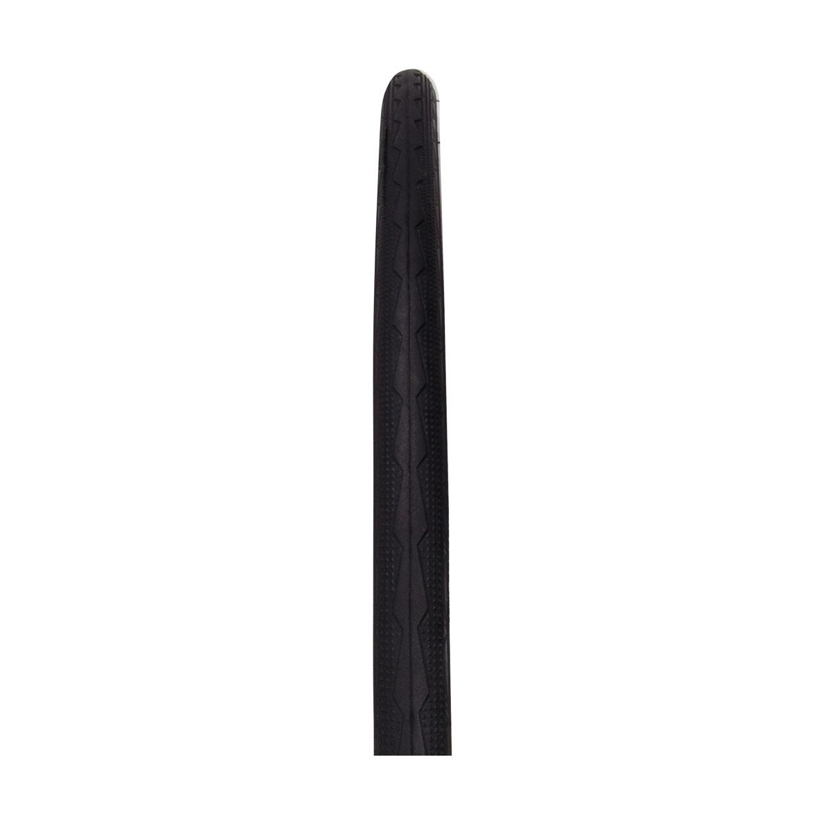Cestný plášť so šípovým vzorom strednej časti je zárukou smerovej stability a kontroly bez obmedzenia trakcie a akcelerácie. Nízky valivý odpor poskytuje efektívnu a komfortnú jazdu. Jemné bočné výstupky zaručujú bezstarostnú jazdu v rýchlych zákrutách pri dlhých zjazdoch. 27TPI konštrukcia plášťa zabezpečuje veľmi dobrú životnosť a odolnosť behúňa voči prerazeniu pri zachovaní vynikajúceho pomeru cena/výkon. Stenčované bočné steny SKIN WALL znižujú celkovú hmotnosť plášťa.