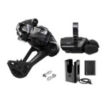 Balenie obsahuje: Prehadzovačku, radenie (ovládač), nabíjačku, batériu, rýchlospojku reťaze (QuickLink). Montáž radenia: na objímku.