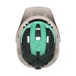 Prilba má vpredu dostatok miesta pre nosenie downhillových okuliarov, ktoré možno uložiť aj na vrch prilby.