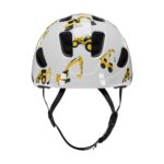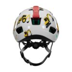 Zadná strana prilby je rovná, aby dieťa mohlo pohodlne sedieť v cyklo sedačke alebo vo vozíku a takisto je prispôsobená aj na nosenie copu.