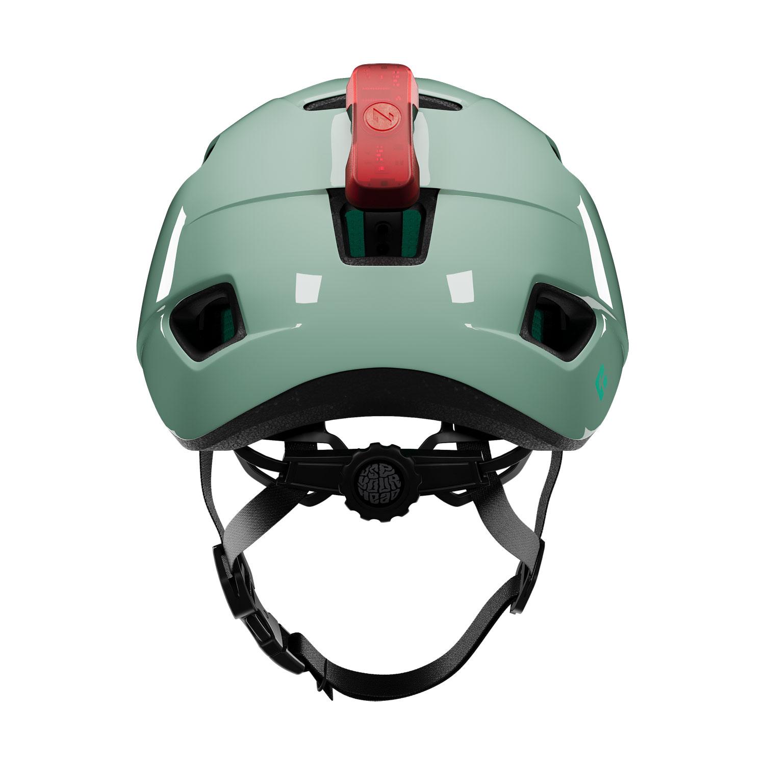 Prilba má ľahko nastaviteľný systém upínania s reflexnou nálepkou „Use Your Head“.